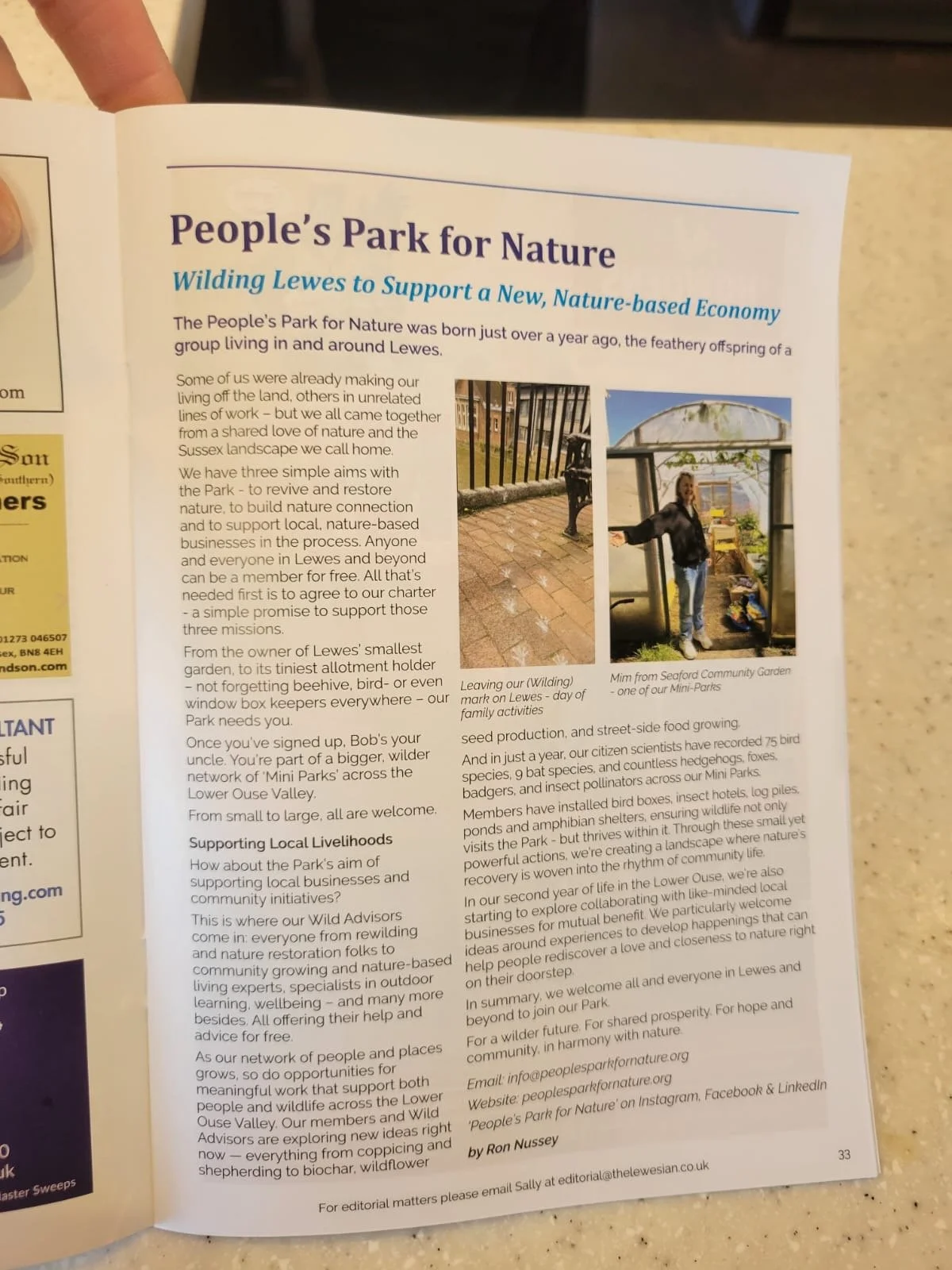 The following article appears in the latest issue of the Lewesian magazine, introducing People’s Park for Nature, how we started and what we do - read on below: